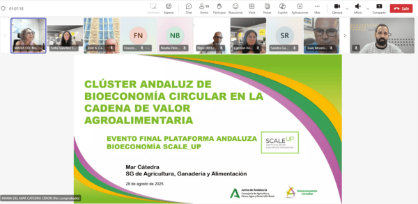 The final event of the SCALE-UP Andalusian Bioeconomy Platform has taken place online on August 28th, marking the conclusion of the project’s initiatives in the region. The event has included a review of the work carried out over the three years of the project, as well as a discussion on how participation in the platform has benefited the involved entities. In addition, the Andalusian Cluster of Circular Bioeconomy in the Agri-food Value Chain, of which CTA is a member, has been presented.